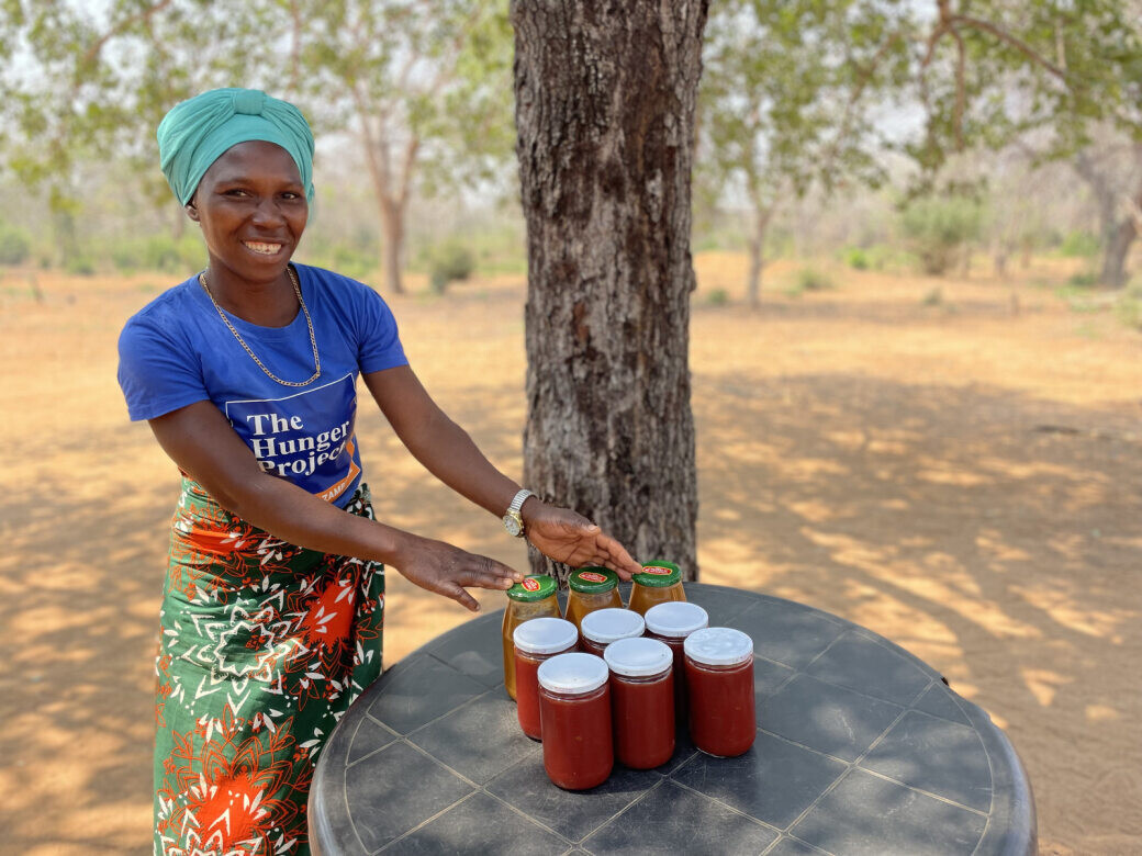 "I've learned how to process all my leftover tomatoes into a sauce. That's handy because it allows me to preserve my harvest for a longer time – in these jars, up to 3 months. I can either sell them or enjoy them myself." Alzira, from a village nearby Zinave National Park Mozambique Since 2021, The Hunger Project, in collaboration with Peace Parks Foundation, has initiated a project around Zinave National Park.